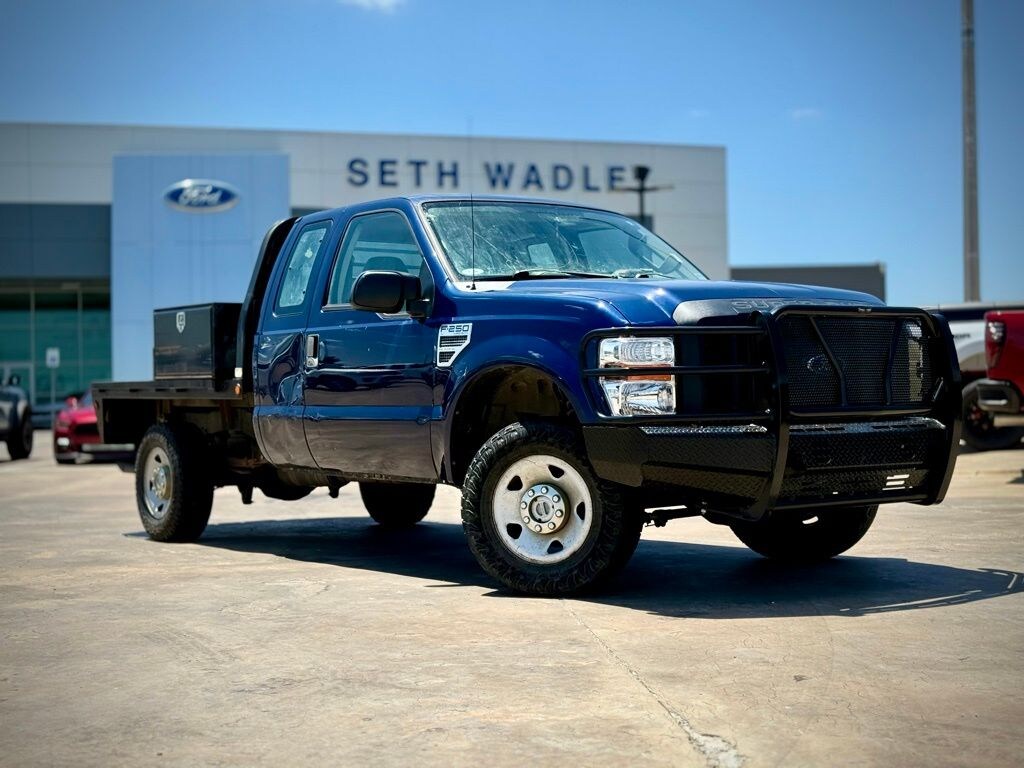 2008 Dark Blue Pearl Clearcoat Metallic Ford F-250SD XL Truck Extended Cab 4WD Triton 6.8L V10 EFI SOHC 30V This Ford F-250SD has many features and is well equipped including 405-338-4788, 6.8L, 5th Wheel Hitch Prep Kit, Off Road Package, All Terrain Package, 4WD, All-Wheel Drive, AWD, 3/4 Ton, Super Duty, F-250, Commercial, Premium Package, XL, Preferred Equipment Group, Running Boards, Trailer Tow Package, Low Miles, Lifetime Window Tint Protection (Available), Ozone & CLO2 Treatment by Premier Auto Care, Triton 6.8L V10 EFI SOHC 30V, 4WD, 4x4 Off Road Package, ABS brakes, Bright Chrome Hub Covers & Center Ornaments, Camper Package, Chrome Front Bumper, Dual Beam Jewel Effect Headlamps, Heavy Service Front Springs (1 Up Upgrade), Low tire pressure warning, Order Code 600A, Power Equipment Group, Power Fold-Away Black Mirrors, Power Front Side Windows, Power Locks, Rear Stabilizer Bar, TowCommand Integrated Trailer Brake Controller, TowCommand System, Underhood Engine Compartment Light, XL Decor Group.
