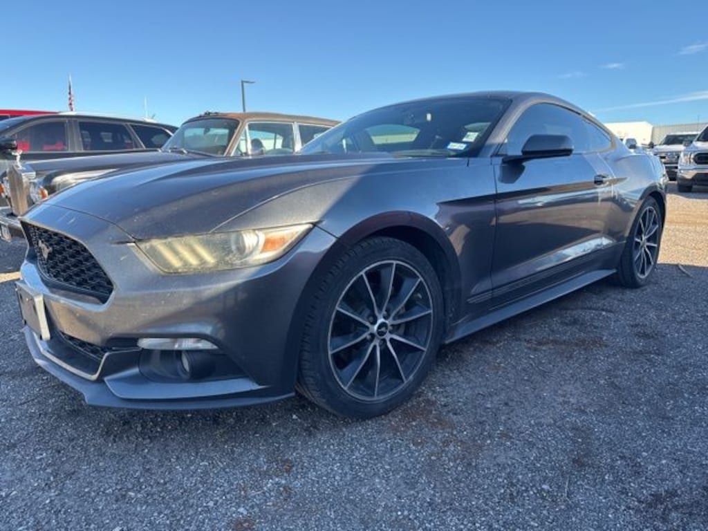 Recent Arrival! 2015 Magnetic Metallic Ford Mustang EcoBoost 2D Coupe RWD EcoBoost 2.3L I4 GTDi DOHC Turbocharged VCT This Ford Mustang has many features and is well equipped including 405-338-4788, Clean CarFax, ABS brakes, Alloy wheels, Compass, Electronic Stability Control, Illuminated entry, Low tire pressure warning, Remote keyless entry, Traction control.