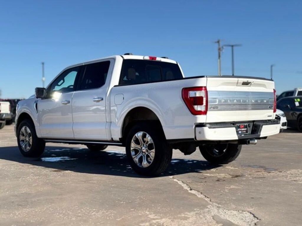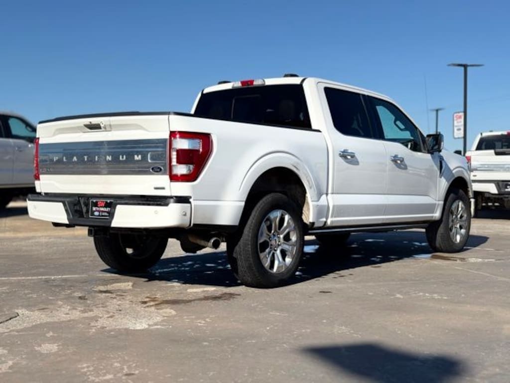2021 Star White Metallic Tri-Coat Ford F-150 Platinum 4D SuperCrew 4WD 3.5L V6 EcoBoost This Ford F-150 has many features and is well equipped including 405-338-4788, Clean CarFax, Active Parking Assist, Navigation Capable, Touchscreen Controls, Remote Vehicle Start, Automatic Headlights, Voice Recognition, Bluetooth Hands-Free, Premium Package, Preferred Equipment Group, Center Console, Lifetime Window Tint Protection (Available), 4WD.